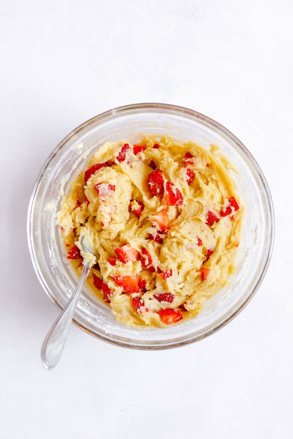 - Fold in diced strawberries